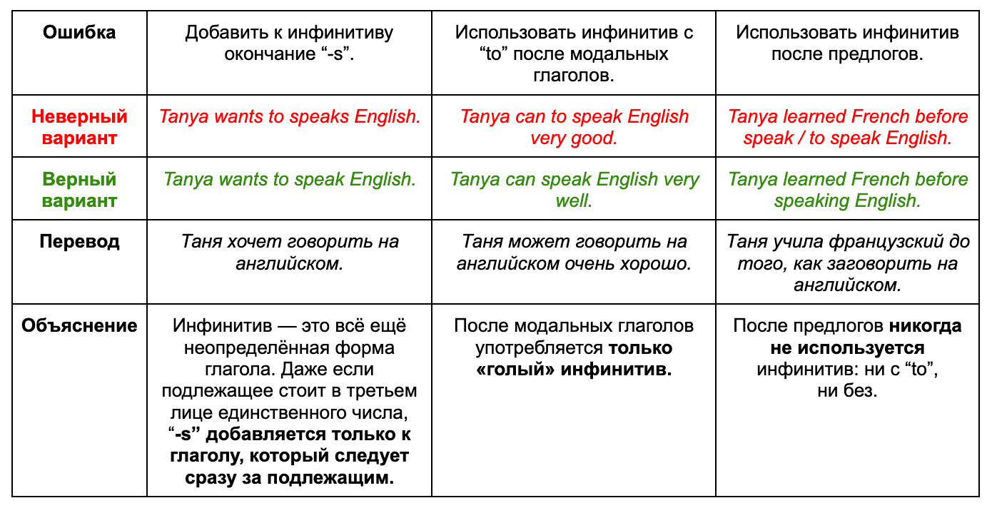 3. Самые частые ошибки в использовании инфинитива